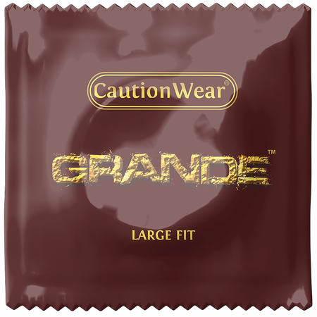 CautionWear® Grande™ condom is a premium large latex condom, N-9 FREE, parallel-sided, transparent in color (clear latex), with reservoir tip, lubricated with ultra-smooth silicon-based lubricant. 100% electronically tested.
